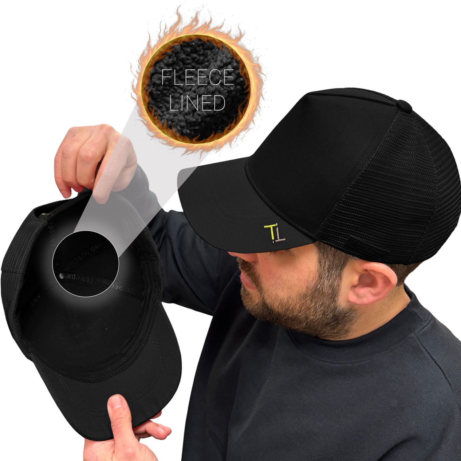 Temple Tape Fleece Lined Trucker Hats – Winter Hat - Designed for Men & Women – Mesh Back - Adjustable Snapback