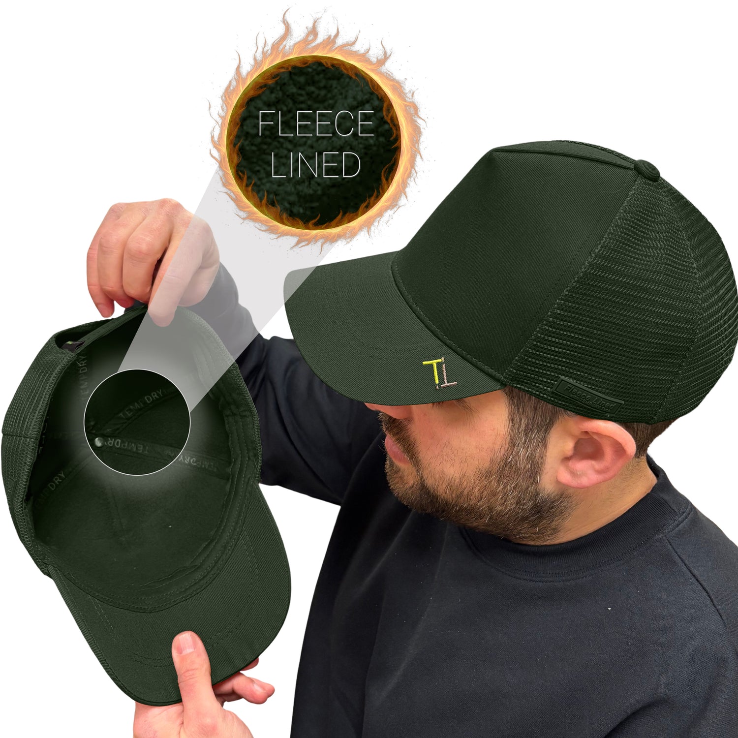 - Temple Tape Original Design: A stylish, high-quality trucker cap featuring a fleece-lined interior - Available in Black, OD Green, Burgundy, Graphite Grey, Navy, White, Pink